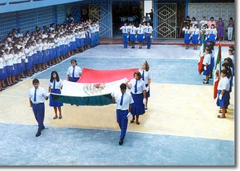 Honores a nuestra Bandera en el patio cívico de la institución..